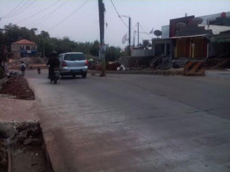 Awalnya jalur jalan yang cuma satu jalur di kawasan ini dilebarkan dan dibeton mejadi dua jalur. Namun pengerjaannya belum sempurna sehingga masih ada galian-galian tanah di samping jalan baru ini.