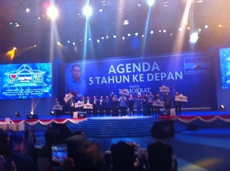 "Rumah Kita, ini karena our home adalah Partai Demokrat. Di situ lah kita memohon pada Allah, di situ kita belajar berbakti untuk negara. Ada kebocoran kita tambal, rusak kita betulkan, tidak perlu membocori rumah tetangga. Rumah besar kita adalah Indonesia," kata SBY yang didampingi sang istri, Ani Yudhoyono.