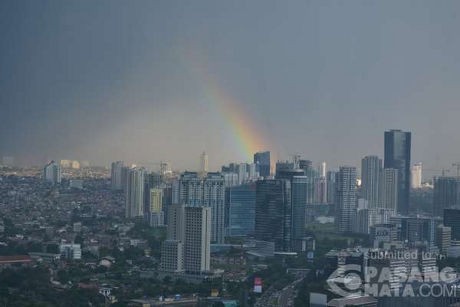 Alex L Setiawan menjepret pelangi ini dan mengirimkannya ke pasangmata.com. Terlihat pelangi ini menyembul di antara gedung-gedung perkantoran yang menyesaki kawasan Jl Sudirman.