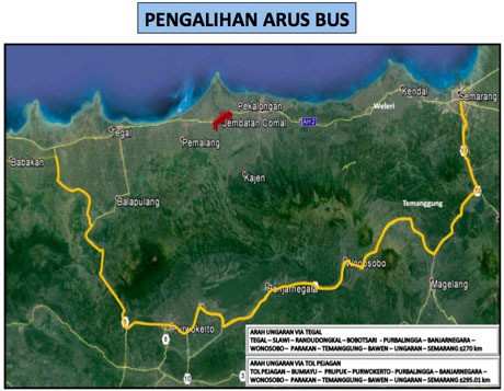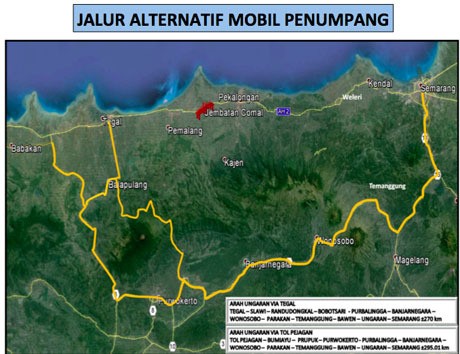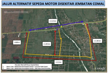 Dalam rilis berbentuk presentasi kepada detikcom, Rabu (23/7/2014), Kemenhub menyampaikan gambar terkini perbaikan jembatan Comal. Selain itu, ada juga sejumlah rute alternatif yang bisa ditempuh oleh para pengendara. Mulai dari motor, bus, hingga kendaraan pribadi.