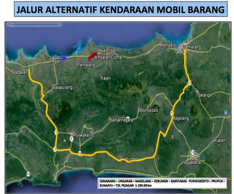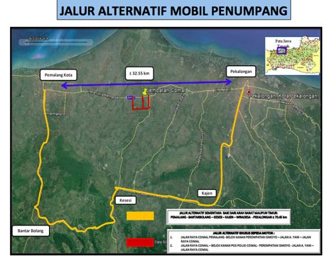 Alternatif lainnya dari Jl Ahmad Yani belok di perempatan Ismoyo, lalu masuk ke jalan raya Comal-Pemalang.