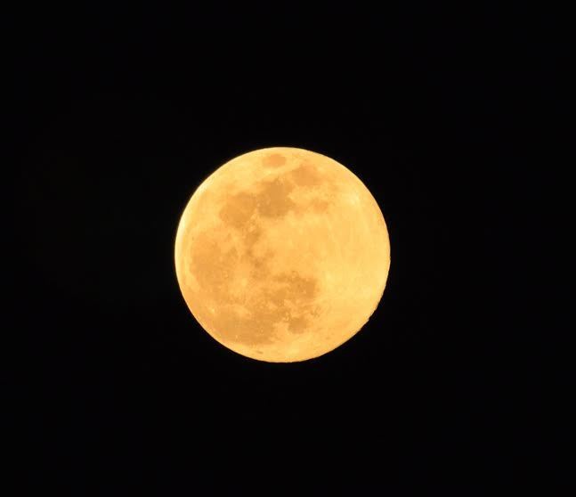 Dari foto yang dikirimkan terlihat bulan yang bulat sempurna. Terlebih bulan tersebut terlihat dengan warna keemasan, semakin cantik.