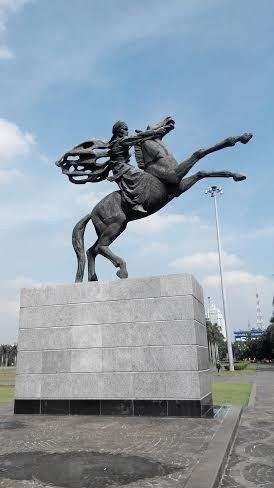 Asvi menuturkan, patung pemuda bersemangat dengan berpose menunjuk itu dibuat pada 1965 dan selesai sekitar 1967-1970. Edhi Sunarso membangun patung itu atas permintaan Soekarno. Patung dibangun dari perunggu dan melibatkan pemahat Yogyakarta. Tiang penyangga patung tingginya 27 meter dan tinggi patung dari perunggu 11 meter.