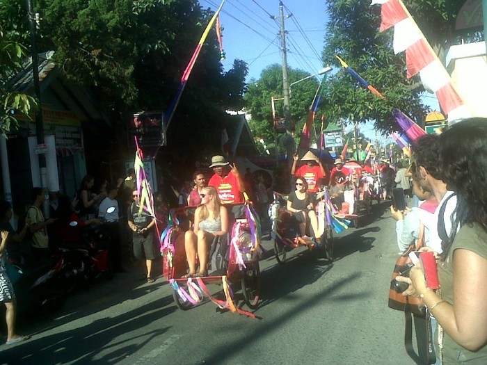 Fashion on the street ini diiringi dengan karnaval dan melakukan atraksi di sepanjang yang dilintasi. Karnaval yang memeriahkan acara ini terdapat 7 karnaval di antaranya prajurit bregodo, reog, jathilan, tari-tarian, sepeda onthel dan becak hias yang berpenumpang para bule.