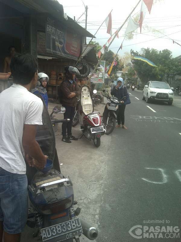 Dari foto yang dikirimkan Miztia terlihat antrean pemotor di lokasi itu sudah tidak teratur. Para pemotor tidak membentuk barisan lagi karena saking lamanya antre.