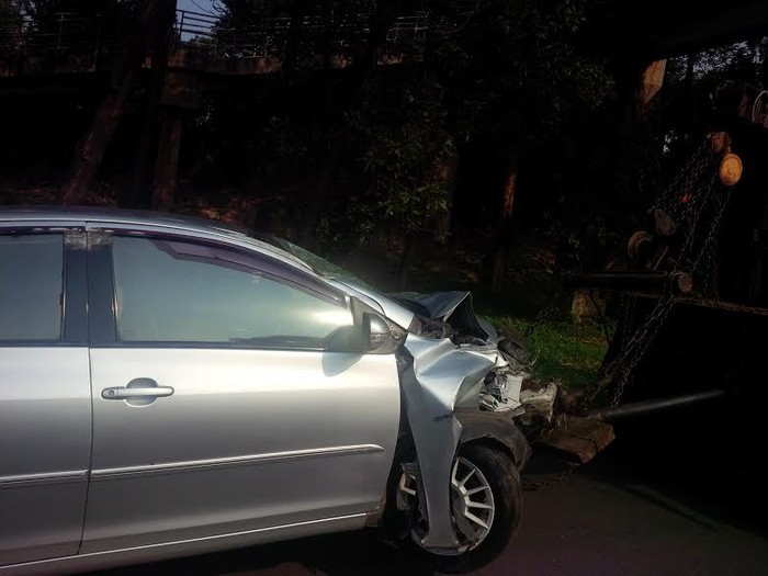 Mobil itu ringsek di bagian depan. Sedangkan pembatas jalan tol yang terbuat dari baja tampak bengkok. Mobil kemudian diderek oleh mobil derek PT Jasa Marga menuju arah Jakarta.