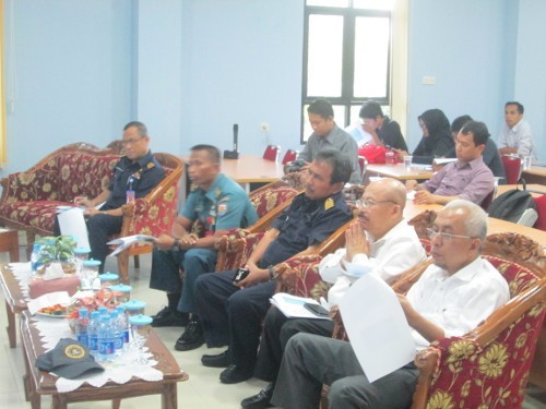 Ketua Satgas Mas Achmad Santosa didampingi Irjen Kementerian Kelautan dan Perikanan Andha Fauzi Miraza dan staf KKP lainnya dari Jakarta, menemui para penyidik di Stasiun Pengawasan Sumber Daya Kelautan dan Perikanan (PSDKP) Kalimantan Barat, Rabu (18/3/2015) pagi. Di sana, hadir juga para penyidik kasus perikanan dari TNI Angkatan Laut dan Pol Air Polda Kalimantan Barat.
