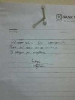 Surat yang disebut-sebut sebagai wasiat terakhir Ace bertuliskan: will not return for please don't search for existence my apologies for everything eternally. Polisi Depok yang menangani kasus ini menyebut, berdasarkan keterangan saksi-saksi tulisan itu adalah tulisan Ace, demikian juga tanda tangannya