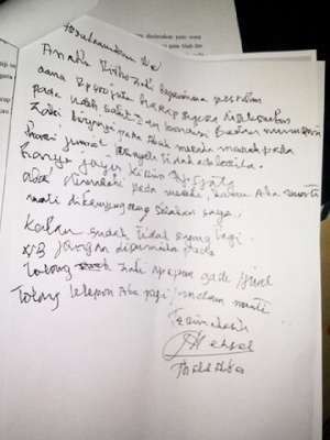 NB: tolong telepon Abah pagi, malam mati.