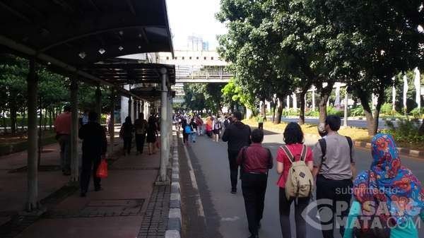 "Pengguna KRL banyak yang berjalan kaki ke kantor dari Stasiun Sudirman," kata Indra Bakti, kontributor pasangmata.com.