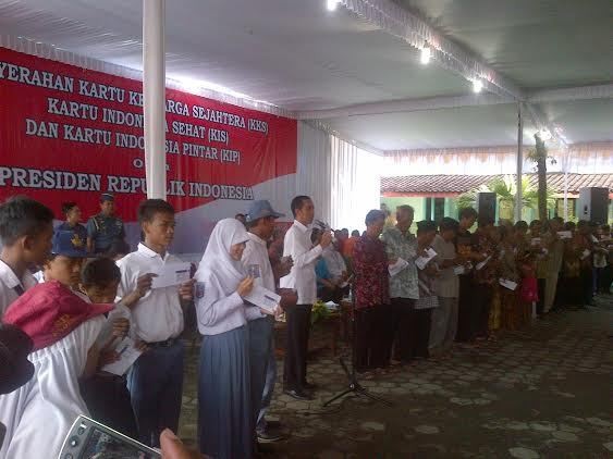 Ratusan warga telah menunggu kedatangan Presiden semenjak pagi untuk acara penyerahan Kartu Indonesia Sehat (KIS), Kartu Indonesia Pintar (KIP), dan Kartu Keluarga Sejahtera (KKS).