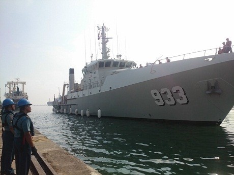 Kapal survei canggil milik TNI AL, KRI Rigel 933 tiba di Dermaga JICT II, Pelabuhan Tanjung Priok, Jakarta Utara. Kapal ini diyakini dapat memperkuat kapal-kapal survei TNI AL.