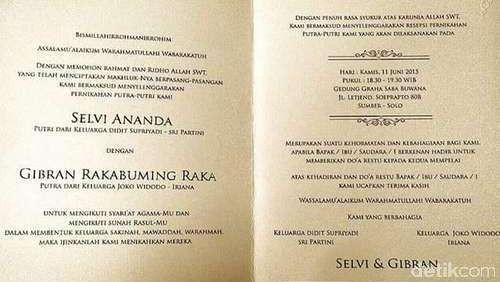 Berikut serba-serbi pernikahan Gibran-Selvi seperti dirangkum, Senin (8/6/2015):