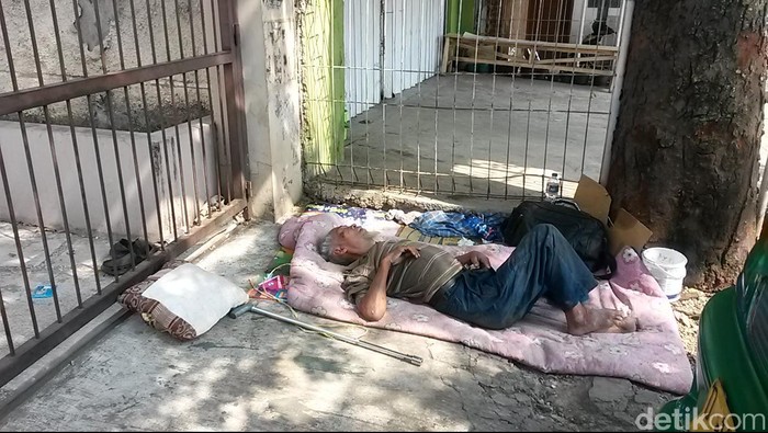 Bandung - Seorang kakek tidur tergolek lemah di depan pagar rumah nomor 341 Jalan Kopo, Kecamatan Bojongloa Kidul. Sudah 10 hari terakhir ia luntang-lantung di sekitaran perempatan tersebut.