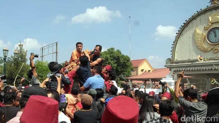 Saat gunungan tiba di depan halaman masjid besar, abdi dalem utusan karton menghadap penghulu masjid agar didoakan. Namun belum selesai didoakan, ratusan masyarakat sudah tidak sabar lagi untuk merayahnya. Meski sudah diperingatkan agar tidak merayah lebih dulu sebelum doa selesaikan panjatkan. Namun masyarakat sudah tak sabar lagi.