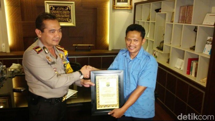 "Ini penghargaan atas kesediaan bapak, keberanian Bapak Sairin yang tidak hanya menjadi supir taksi yang hanya menerima uang dan mengantarkan ke tempat tujuan saja kemudian langsung pergi namun karena melihat anak sendiri kemudian mengantarkan Sintya sampai ke rumah orangtuanya," ujar Kapolres Jaktim, Kombes Umar Faroq, di Kantornya, Jl Jatinegara, Selasa (21/7/2015).