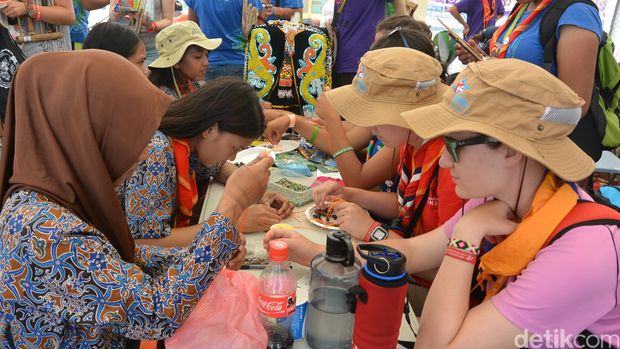 Mereka saling belajar bersama dan terlihat akrab. Stan Indonesia yang selalu ramai semakin mengundang para pramuka lain untuk datang berkunjung.