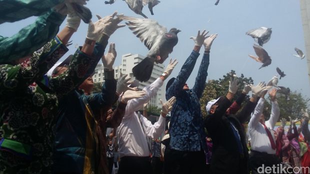 Dalam acara itu 150 penerima program beasiswa didampingi Menag Lukman Hakim dan Dirjen Pendidikan Islam Kamaruddin Amin melepas 150 burung merpati. Pelepasan 150 burung merpati tersebut memiliki arti bahwa Kementerian Agama sudah merestui keberangkatan 150 orang penerima beasiswa 5.000 Doktor.