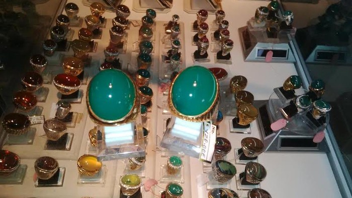"Ini Rp 150 juta, yang termahal dari kami," kata karyawan Dermaga Gem Stone bernama Riki sambil menunjukkan dua buah cincin yang ditotal maka seharga Rp 300 juta itu.