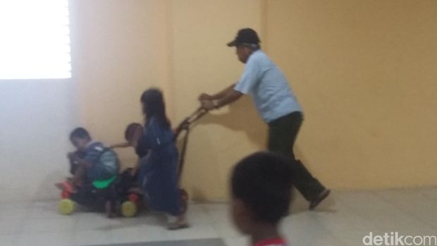 ![]() Nopi (13) bermain dengan sang kakek, Wahyudi. (Foto-Yudhistira/detikcom) |