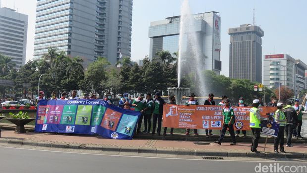 Pantauan detikcom di lokasi, Selasa (1/9/2015), massa telah berdatangan sejak pukul 08.30 WIB. Saat ini di seputaran bundaran Patung Kuda yang mengarah ke Jalan Medan Merdeka Barat, ratusan pendemo dari berbagai serikat buruh telah bersiaga sambil membawa bendera dan memegang spanduk.