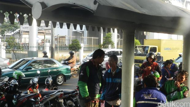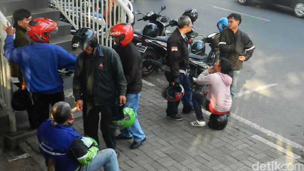 Beberapa foto juga menunjukkan mereka saling bercengkerama saat menunggu penumpang di trotoar jembatan Palmerah. Kompaknya para pengemudi ojek berbasis aplikasi dan pangkalan layak menjadi contoh. Tidak ada saling rebutan atau adu jotos diantara keduanya.