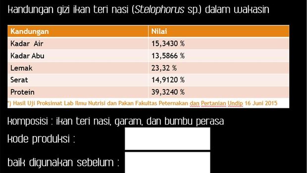 Daftar nilai gizi yang ada dalam kemasan Wakasin (Foto: Dokumen pribadi)
