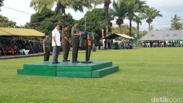 Mayjen Doni memberikan bantuan kepada warga dan sejumlah unsur daerah di Ambon. Pemberian bibit dilakukan Lapangan Mayonif 733/Raider, Waiheru Kecamatan Baguala, Ambon, Jumat (11/9/2015).