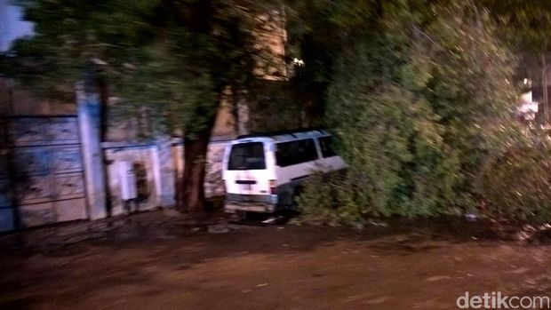 Dua kaca jendela di penginapan 625 pecah, petugas dari penginapan sedang menyingkirkan kaca yang berserak di pinggir jalan. Jendela yang pecah terlihat dari luar tampak terbuka lebar. (ega/ega)