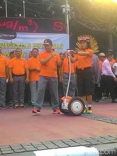 Total jajaran polisi yang patroli menggunakan segway berjumlah 10 personel. Patroli dilakukan dari Jalan MH Thamrin hingga Bundaran HI.