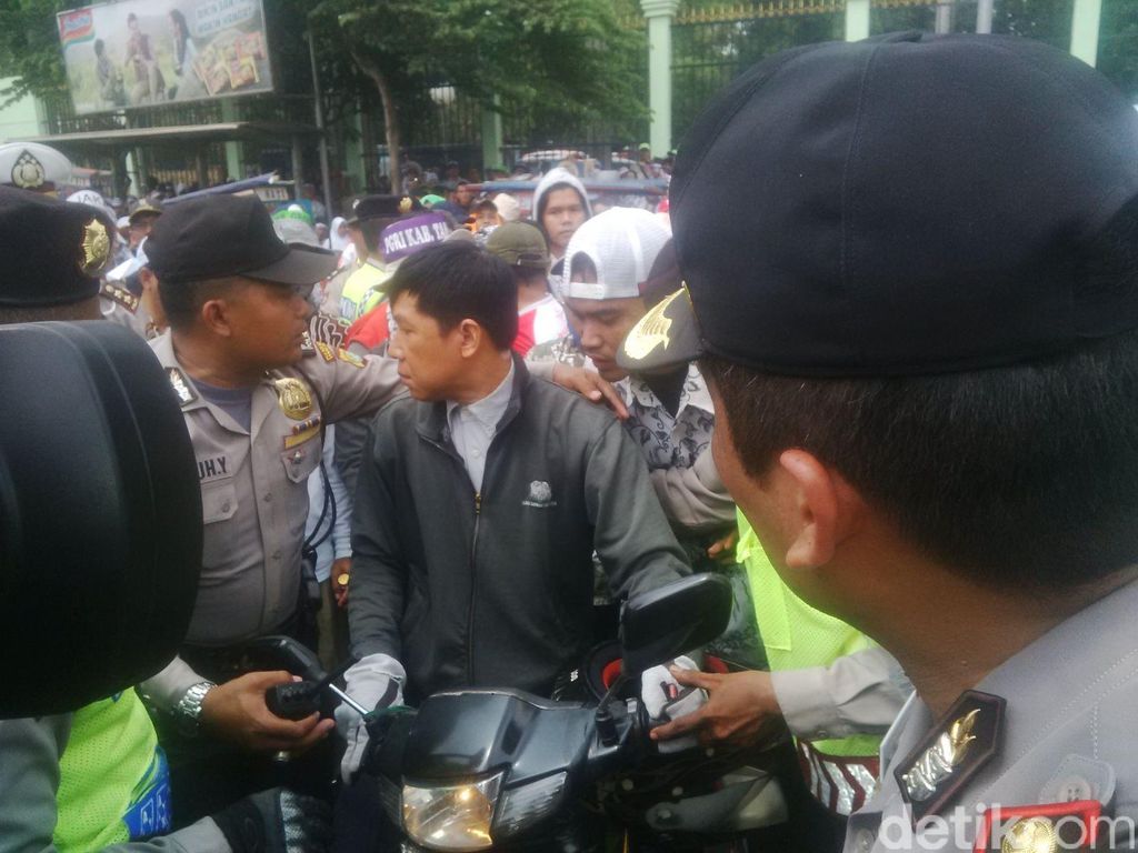 Suasana ini membuat riuh depan Gedung DPR, Senayan, Jakarta, Selasa (15/9/2015). Nyaris terjadi keributan akibat kejadian tersebut.