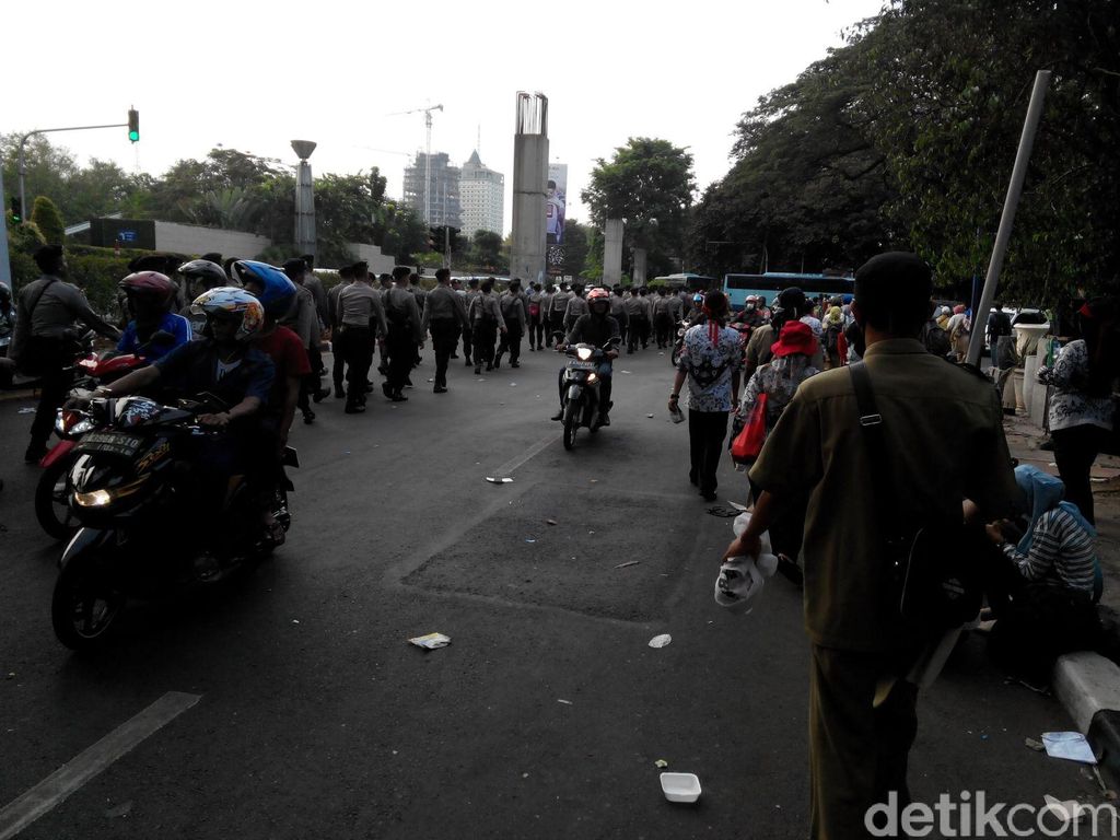 Meski demikian, karena saat ini jam pulang kantor, arus lalu lintas macet total dari depan Hotel Mulia Senayan menuju depan Gedung DPR macet. Pengendara yang melintas diarahkan masuk ke jalur bus Transjakarta.