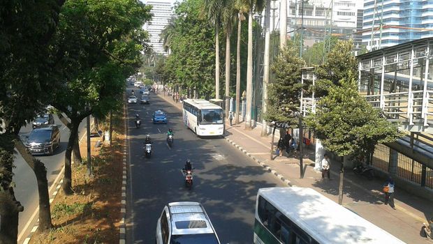 Terpantau di lokasi pada Rabu (23/9/2015) pukul 09.00 WIB, kendaraan yang melaju di Jalan Jenderal Sudirman arah Bundaran HI terpantau lancar. Padahal ini merupakan jam sibuk orang-orang pergi ke kantornya.