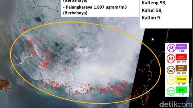 Jakarta - Kepala Pusat Data Informasi dan Humas BNPB, Sutopo Puwo Nugroho menjelaskan, berdasarkan evaluasi hingga hari ini Selasa (22/9) sekitar pukul 20.00 WIB, kondisi hotspot atau titik api kebakaran hutan, sudah mulai menurun. Kondisi yang membaik itu terlihat di wilayah Riau, Pekanbaru dan beberapa wilayah di Sumatera Selatan.