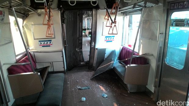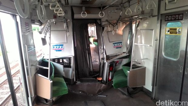 Berdasarkan pantauan detikcom di Stasiun Juanda, Rabu (23/9/2015) sore, sedikitnya lima penghubung antar gerbong KRL yang berada di sebelah utara (arah stasiun kota) rusak parah. Begitu juga dengan KRL yang berada di sisi stasiun Juanda, mengalami kerusakan meski tak separah yang di sisi kota.