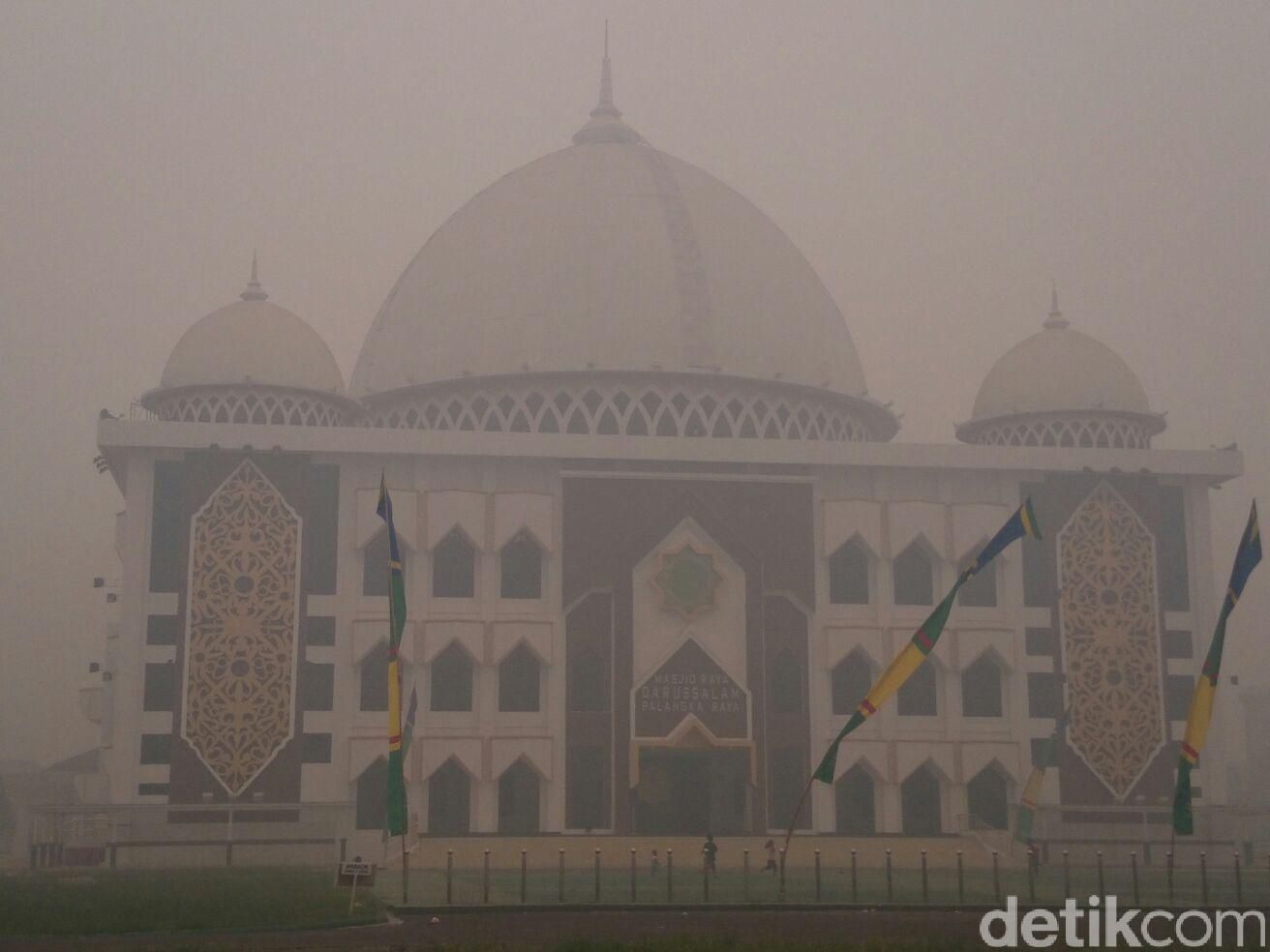 Masjid Raya Palangkaraya nyaris tidak kelihatan. Begitu pula dengan salah satu ikon kota, Bundaran Besar.