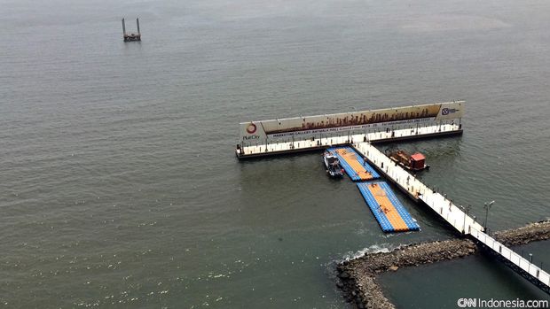 Batas proyek reklamasi Pulau G yang rencananya bakal dikerjakan oleh PT Agung Podomoro Land Tbk melalui anak usahanya PT Muara Wisesa Samudra, Pluit, Jakarta, Kamis, 17 September 2015. (CNN Indonesia/Giras Pasopati)