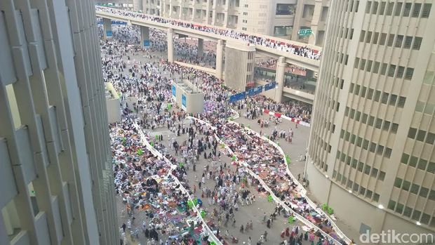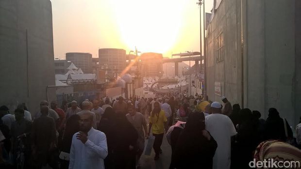 Pantauan detikcom, Jumat (25/9/2015), jumlah jemaah haji Indonesia yang melontar jumroh kian bertambah banyak selepas maghrib. Mereka datang dari arah jalan King Fahd atau terowongan pedestrian 15.