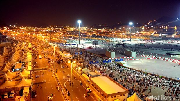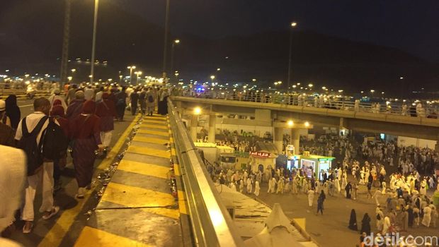 Saat itu jemaah semua berjalan kaki masuk ke terowongan King Khalid Road Tunnel. Tak ada bus yang boleh mendekat ke tenda. Jalan 204 di kanan dan kirinya adalah tenda.