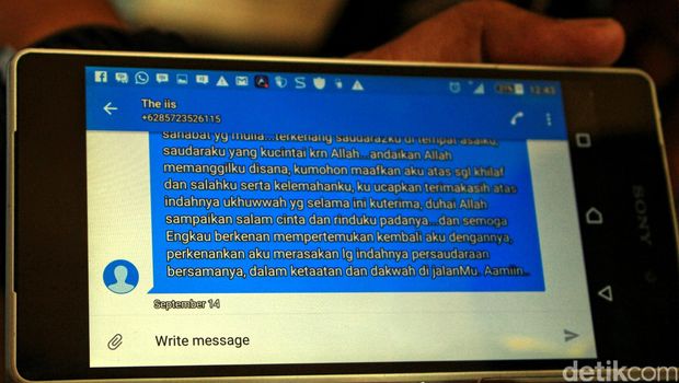 Holdun mengaku sering berkirim pesan singkat dengan sang kakak, namun setelah pesan pada Senin (14/9) itu sang kakak berhenti menjawab meski beberapakali dikirimi pesan. "Setelah sms itu tak ada jawaban lagi dari beliau," imbuhnya.