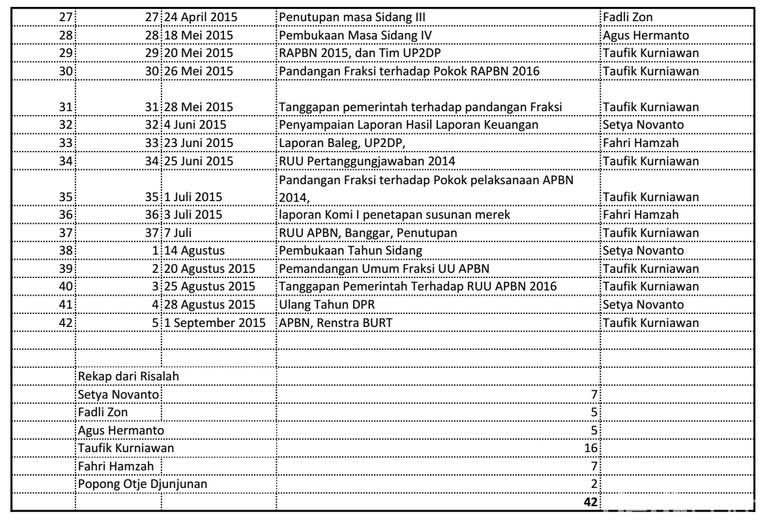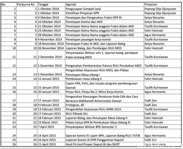 Berikut detail 42 paripurna DPR periode 2015-2019: