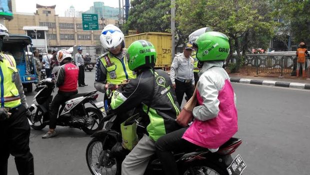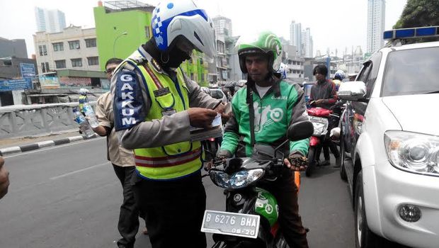 Tak cuma pelajar, beberapa pengemudi ojek online juga ditilang. Sama seperti pelajar itu, mereka mengaku tidak membawa SIM. Akhirnya surat tilang diberikan. (edo/dra)