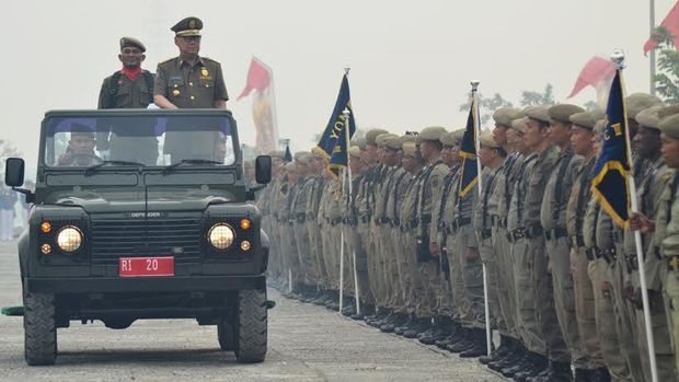 Peserta upacara adalah 1.500 Kepala Satpol PP di tingkat provinsi, kabupaten dan kota dari Aceh sampai Papua. Mereka sudah hadir sejak sekitar pukul 06.30 WIB. Pada pagi itu, jarak pandang akibat bencana asap hanya sekitar 500-1000 meter.