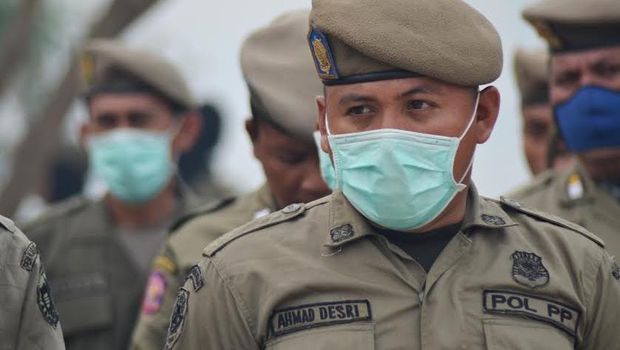 Anggota Satpol PP menggunakan masker untuk menghalau asap (Iqbal/detikcom)