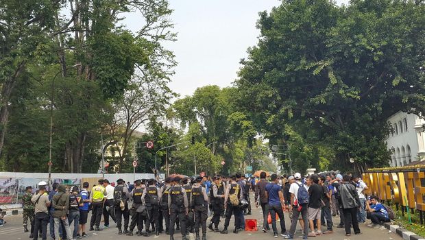 Seribuan bobotoh yang masih terlantar tersebut memenuhi depan Gedung Sate di Jl Diponegoro, Bandung, Minggu (18/10/2015).