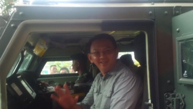 "Aku bisa naik sini nih?," tanya Ahok ke Pangdam Jaya sambil menunjuk Unimog.