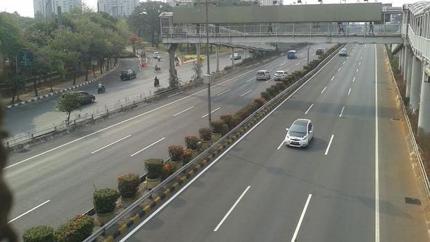 Seperti di seputaran Semanggi, Minggu (18/10/2015) sore, arus lalu lintas lancar. Tak ada kepadatan berarti, malah relatif lengang.