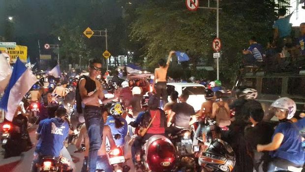 Raungan knalpot dan klakson salin bersahutan. Mereka larut dalam euforia atas keberhasilan Tim berjuluk 'Maung Bandung' meraih juara Piala Presiden 2015.