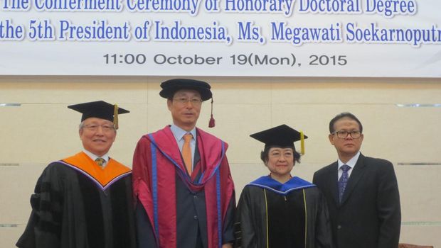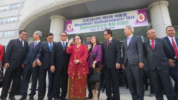 Mega yang hadir di Busan untuk mendapat gelar kehormatan doktor honoris causa, mengaku gampang sekali tersentuh jika berbicara soal reunifikasi Korea.