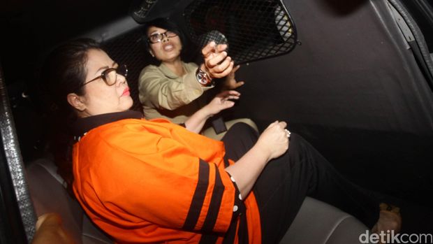 Dewie merupakan tersangka terakhir yang keluar dari ruang pemeriksaan. Sebelumnya, Rinelda yang terlebih dulu keluar dengan berompi oranye khas tahanan KPK. Sekretaris pribadi Dewie itu tampak menutupi wajahnya dengan pashmina ketika keluar sekitar pukul 01.00 WIB. Dia tidak mengucapkan sepatah kata pun dan langsung masuk ke mobil tahanan.